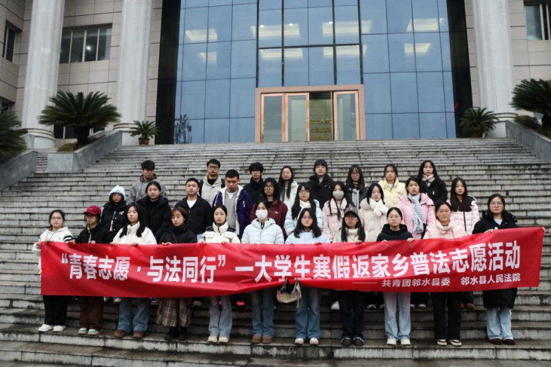 个人感悟:这个寒假,我报名参加了由共青团邻水县委、邻水县人民法院和邻水县青年志愿者协会联合组织的“青春志愿·与法同行”大学生寒假返家乡普法志愿活动。1月29日,我和另外29名志愿者一起,走进邻水县人民法院,以“学习者”和“观察者”的身份,近距离感受司法实践,也对“法律”和“责任”有了更真切的理解。
